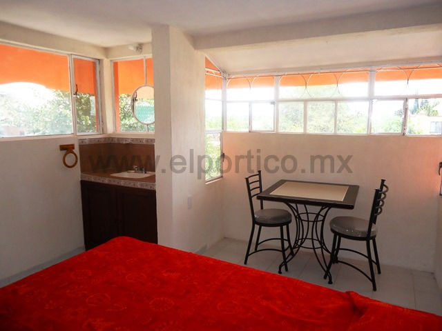 La casa cuenta con 2 recámaras, 2 baños, sala-comedor, cocina con barra, área de lavado, jardín y cochera para un auto. Los estudios tienen entrada propia y baño completo, perfectos para rentas de corto o largo plazo.