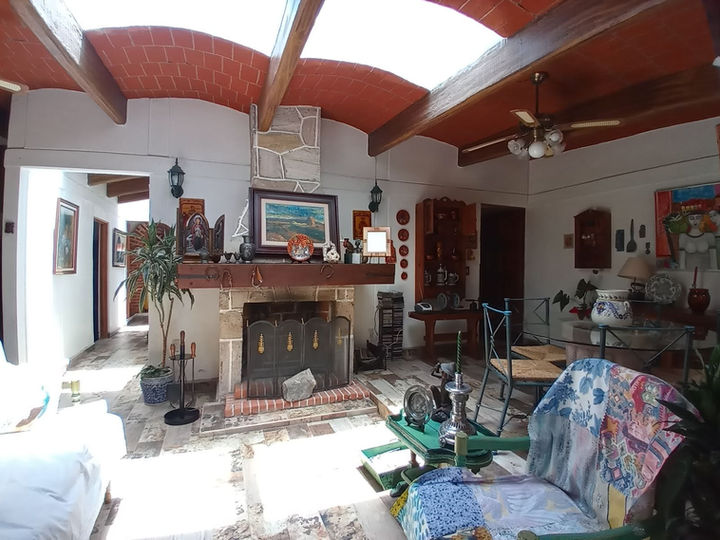 Preciosa casa de una planta, 3 recámaras, 2 baños, recibidor, 2 salas, chimenea, comedor, sala de T.V., cocina equipada con barra desayunador, cuarto de lavado, terraza, bungalow independiente con recámara/estancia y baño.