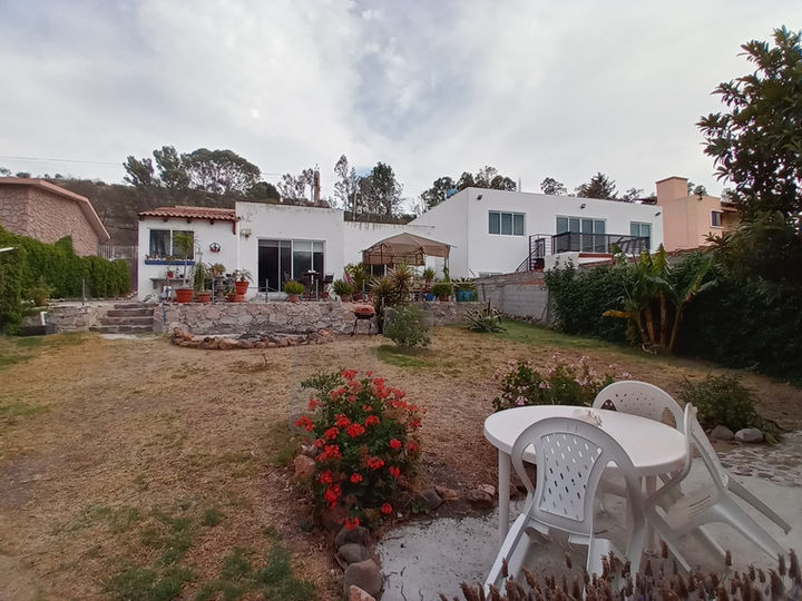 Casa de una planta, 3 recámaras (la principal con vestidor), 2 baños, recibidor, sala, comedor, cocina equipada, cuarto de lavado, terraza, bungalow independiente con recámara, estancia/cocineta y baño. Jardín con árboles frutales. Estacionamiento para 5 autos.