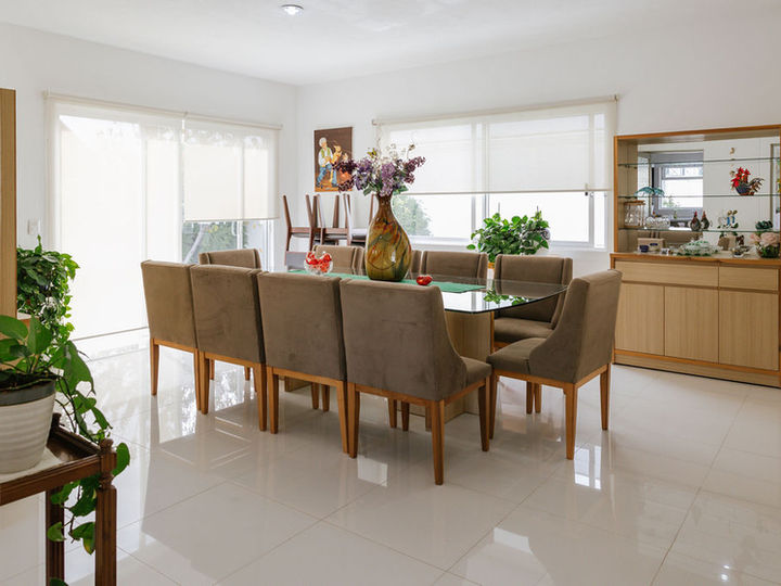 Esta casa te recibe con un elegante vestíbulo que da paso a espacios pensados para el descanso y la convivencia: 2 recámaras, la principal con vestidor doble, sala de TV (posible tercera recámara), sala, comedor y una cocina equipada con estufa eléctrica y lavavajillas.